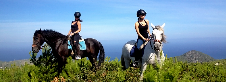 We run small stables, located in the mountains between Sant Joan and Portinatx, in the middle of one of Ibiza's wildest and most beautiful natural protected areas. Our rides lead through an alpine and wildly romantic scenery, which is rounded off by a spectacular view over the Sea.